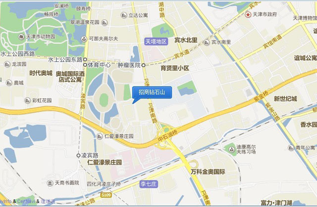 招商钻石山位于天津南开区卫津南路西侧奥体中心旁(原天津电影制片厂地块)。东临卫津南路,南接快速路中石油桥,西至奥体中心(水滴),北达宾水西道。占地14万平米,总建筑面积31万平米,容积率2.13;总体规划产品为低密度TOWNHOUSE别墅和超高层(42—45层)公寓,以及约7万平配套公建(商业、酒店式公寓、写字楼)。高层一共有8栋,超高层(42层)。双拼:4栋。叠拼:3栋。联体:10栋。超高层公寓80-240平米,TOWNHOUSE别墅200-380平米。